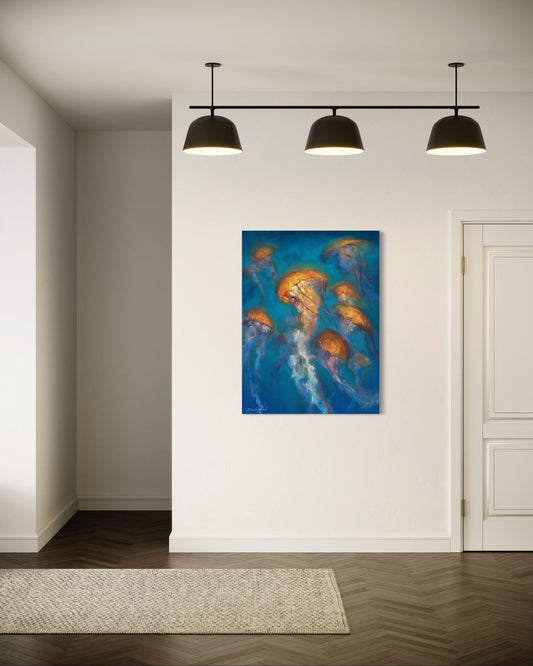 Pieces lit with natural glow—sunrises, sunsets, warm-toned lighting. Great for cozy interiors...